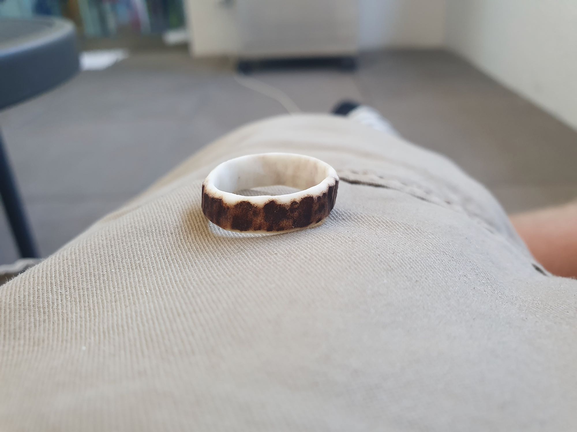 Mein erster Ring aus einem Knochen. Den Knochen konnte ich gratis beim Metzger beziehen.