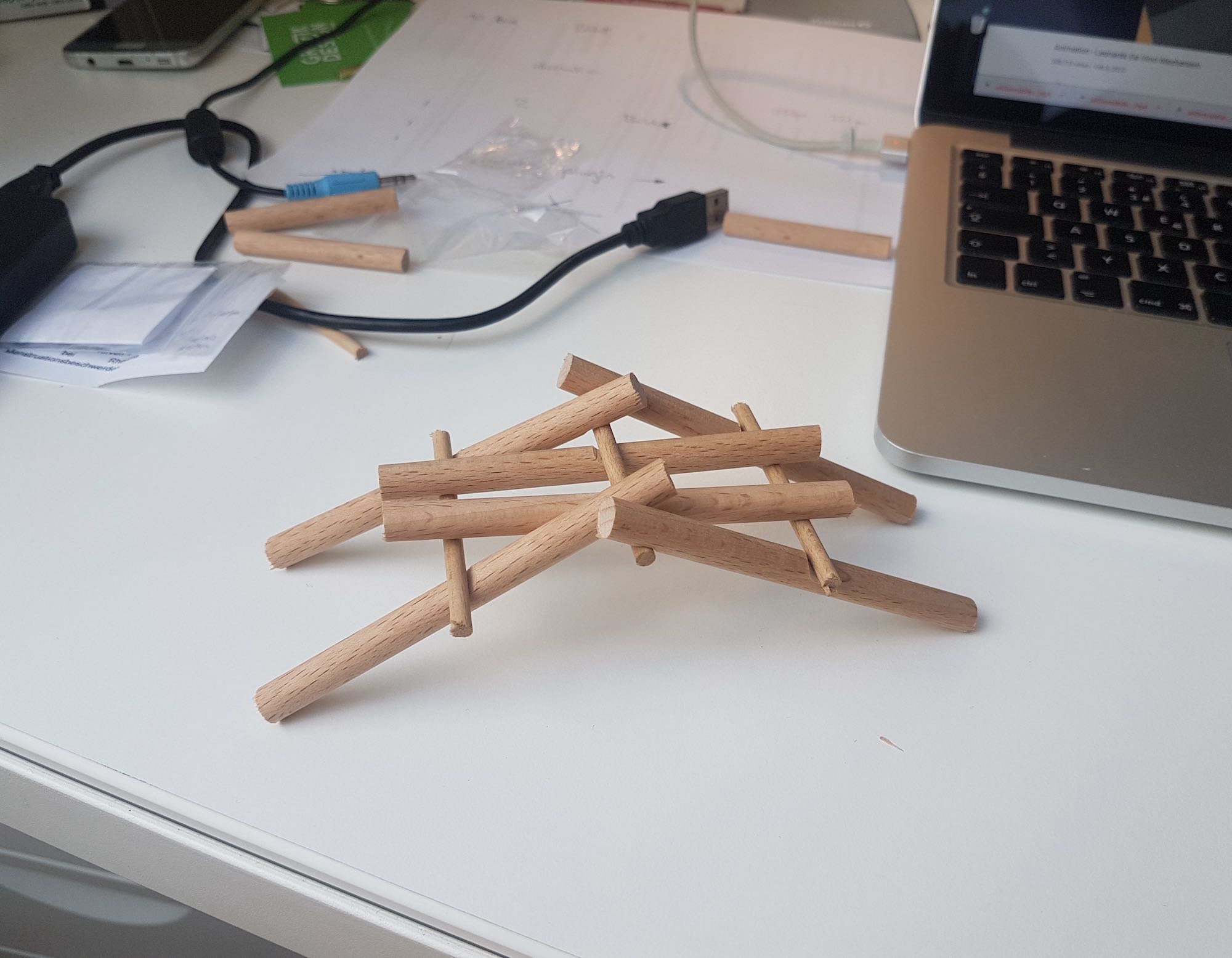 Als grosser Bewunderer von Leonardo Da Vinci habe ich eine Da Vinci Bridge nach seinem Vorbild gebaut. Eine Brücke, die nur durch die eigene Schwerkraft hält.